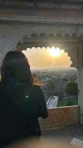 From crowd-sourcing songs through Shivam’s personal-but-public phone(iykyk), to pulling his leg, to interesting discussions, to some of us reading quietly while others relaxed in silence – the tempo kept rolling towards our destination. The topics we discussed seemed to mimic the roads we passed: some were smooth and free flowing, others had tiny bumps, changing directions every few minutes like the curvy uneven roads. Priya grew nostalgic about her childhood in Jaipur; soon we were discussing Jaipur’s delicacies and chai spots – and somewhere between all this, we even played two rounds of Ek Machhli Paani Mein Gayi. What an energy!!