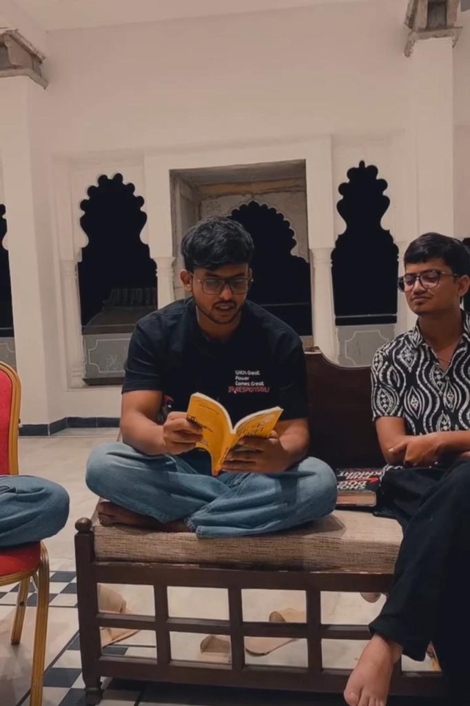 Neel read the pages from the initial chapters where he talked about how 10 purest souls from the world are allowed to enter vansaya, and they have to prepare for the Mahayatra.understanding about poetries.