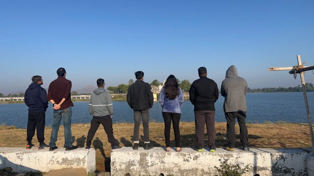 Sipping on the first chai of the day and devouring the ganthiyas while they are still hot, we give in to the simple pleasures of life. We then proceed to have a round table conference (on possibly the smallest round table in the history of round table conferences). Plans for the day are discussed, Priya and Chirag enlighten us with the hardships of dealing with a government body and then get everybody excited teasing the big changes coming to PDBC and details about future plans and retreats. Mansi has started clicking pictures and if later in this writeup I forget to mention her somewhere, the reader shall assume that she would have been busy either clicking pictures or getting her pictures clicked.
