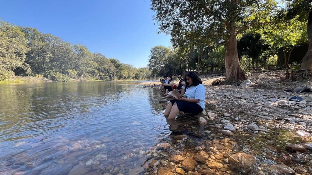 Finally the moment we had been waiting for. We hopped on to the riverside with our books for a silent reading session in the tranquility of a forest. We picked our stones to sit, feet dipped in water, feeling one with nature, everybody went into their own zone. Some reading from the books that they had brought along, some reading from books that others had brought along. Some flexing their skills with skipping stones, some trying to learn the art. Some sat staring across into the woods wondering about the unknown, some gazing at the flowing water just sinking into the otherwise scarcely available peace. After a while, Priya wrote and read us some original poetry – about not keeping things unsaid, letting the soul suffer and instead letting it out – equating it with spitting into a spit can. This was interestingly contrasted by a couple of poetries by Gulzar(one about Books and another about Time) that were read out after and used a much more harmonious language to get the point across. As we were bathing in the sun, and getting a natural pedicure (without the fish part), somebody mentioned that we should click a picture with all our feet in the water. Srijan retorted by saying that his feet would go viral and steal all the thunder on pdbc’s socials and we agreed to discard the idea. Moments later, a group of people arrived at our spot and the small snow globe that we had created where nobody else was there but us was now cracked and we decided to leave for lunch.