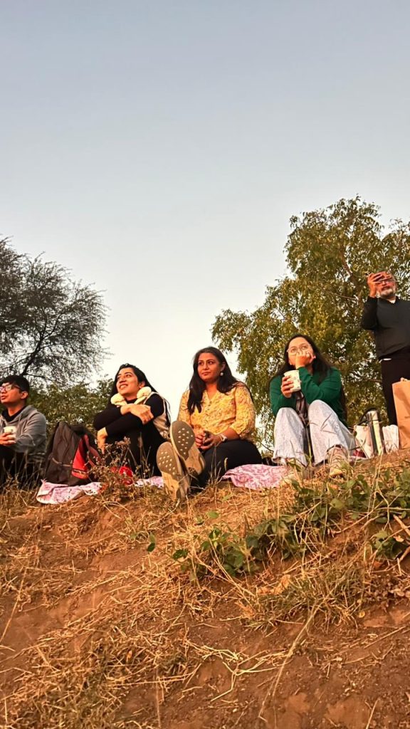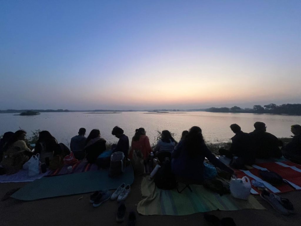 We setup mats and sat in half midnight lights and started observing the nature and birds around us…